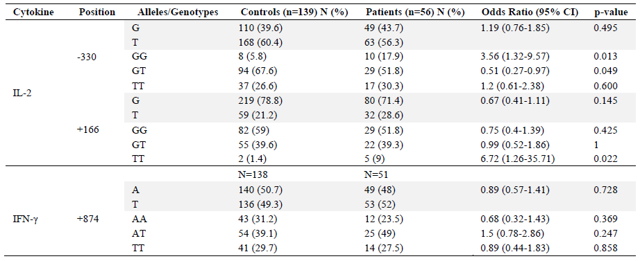 Table 2. IL-2 and IFN-γ allele and genotype polymorphisms in Iranian patients with CHF and controls